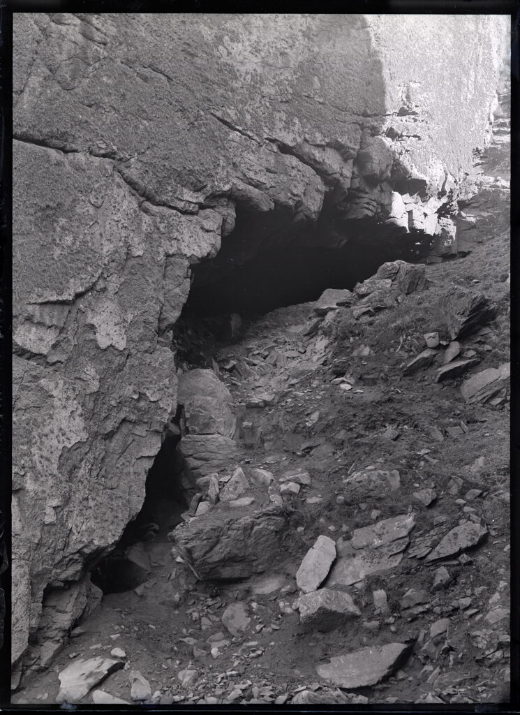 On 25 August 1910 Emile joined Joseph Sinel and E. T. Nicole and four other members of the Société at La Cotte de Saint-Brélade, the palaeolithical site first made famous by the Neanderthal teeth found that year. He likely made four photographs that day, and another three of assembled finds at the Museum. Four of these seven photographs were included in the report on the 1910 excavation published in the Bulletin for 1911. It is of interest to note that Emile had photographed the site before in 1905. There is a single negative surviving, the enclosure is labelled ‘La Cotte, St Brelade – before excavation. 1905?’. The site was excavated in September 1905, however there is no record of Emile being asked to photograph the site prior to the excavation. It is quite possibly coincidental, nevertheless, it demonstrates that Emile was aware of and engaging with what was at the time a lesser known element of Jersey’s archaeological environment.